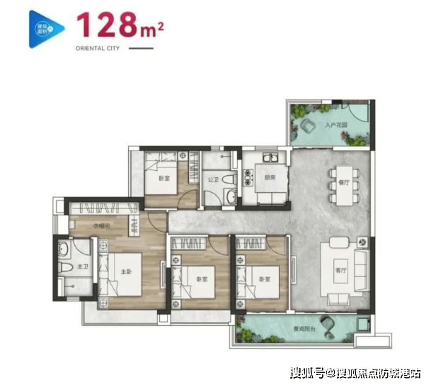 南沙十里方圆二期在售户型涵盖78-128平方米的三四房,包括: