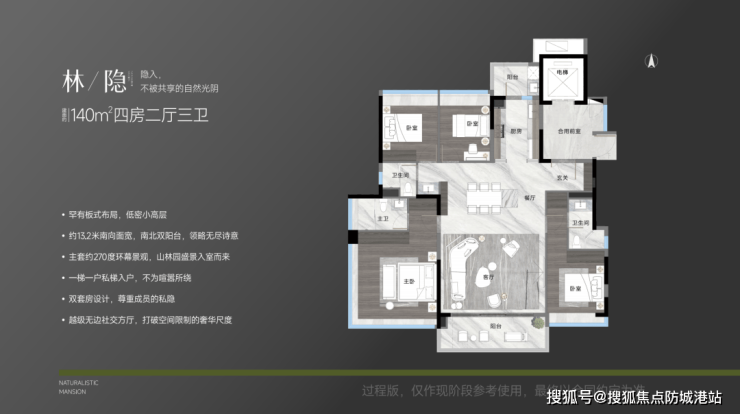 越秀观樾占地面积达13.6万平方米,建筑面积为20.64万平方米,总共有25栋板式结构建筑,采用独梯独户设计,确保了住户的私密性和居住品质。项目分为南北两个地块,北地块提供大面积户型(190㎡和250㎡),南地块则以140㎡户型为主,并配有会所设施。楼栋层高为13至17层,总户数为760户,面积段包括140㎡、164㎡和250㎡四房,层高为3至3.2米。每一种户型都经过精心设计,旨在最大化利用空间的同时,保证居住舒适度和实用性。