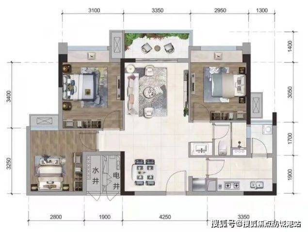 95㎡三房:空间尺度更为舒适,三房设计满足家庭成长需求。客厅与餐厅一体化,营造出宽敞明亮的公共活动区域,方便家庭聚会与日常休闲。主卧套房设计,配备独立卫生间,提升居住私密性与便利性。次卧和儿童房也布局合理,可根据家庭实际需求灵活布置。阳台面积较大,可打造为空中花园,享受阳光与绿植相伴的惬意生活。此户型适合追求品质生活且注重空间实用性的家庭。