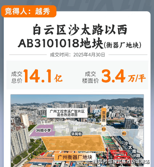 越秀·云萃位于白云区沙太路以西(原衡器厂地块),地处广州城市中轴北延段,距珠江新城直线仅约5公里,一脚踏白云、一眼望天河,区位含金量极高。项目由越秀地产于2025年4月以楼面价约3.8万元/㎡(扣除配建后)竞得,定位纯改善,总占地面积约1.7万平方米,总建筑面积约4.2万平方米,容积率仅2.5,打造低密宜居社区。