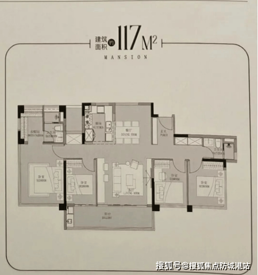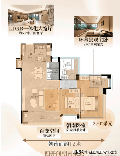 约117㎡四房:12–13层小高层,专梯专户,五开间朝南,LDKB巨厅+27㎡主卧套房,媲美140㎡豪宅体验。