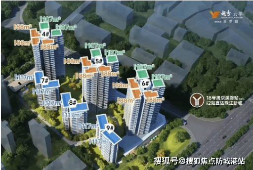 项目规划6栋住宅,包括3栋21层塔楼与3栋12–13层小高层板楼,总户数约391套,层高3米,主打建面约87–117㎡三至四房,兼顾紧凑高效与舒适尺度,填补中轴北段高品质小户型市场空白。