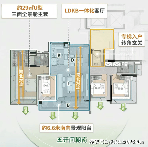 约87㎡四房:四开间朝南,LDKB一体化,5.2米客厅开间,11.6米南向尺度,中轴稀缺新规小户;