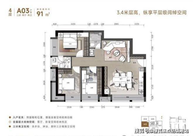 91㎡户型注重收纳与空间的合理利用。入户预留鞋柜位,且全屋拥有超大收纳空间,让生活杂物有足够的存放之处,保持家居整洁有序。洗手间、淋浴、卧室空间三分离独立空间,不仅提高了使用的便利性,还增强了居住的私密性。家庭成员在使用卫生间和淋浴间时,不会相互干扰,同时也能保证卧室的安静与整洁。整体户型布局紧凑合理,空间利用率高,能为家庭提供舒适的居住环境。