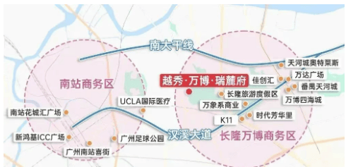 交通枢纽:距离地铁7号线钟村站约1.2公里,步行大约需要15分钟。通过自驾,沿钟顺路连接汉溪大道和南大干线(已开通),仅需10分钟即可抵达万博CBD,30分钟内可达珠江新城。