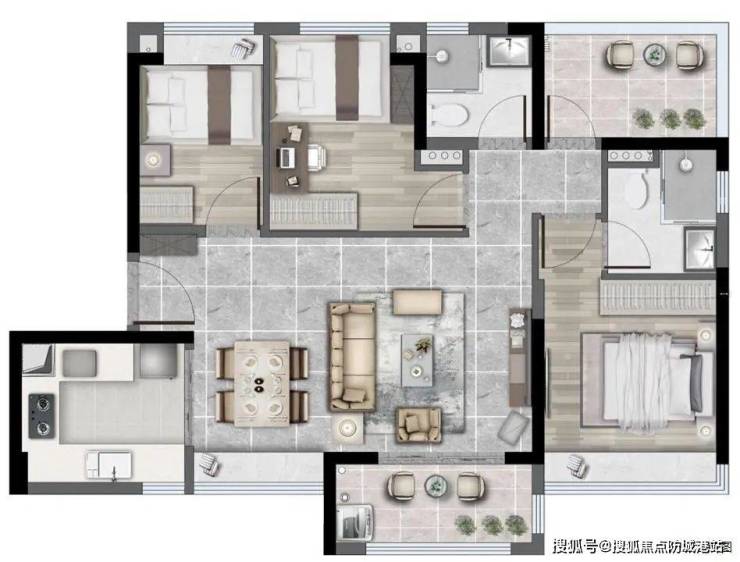 亮点:南向横厅,窗飘组合超长采光面,宽大阳台洄游空间,大面积厨房。