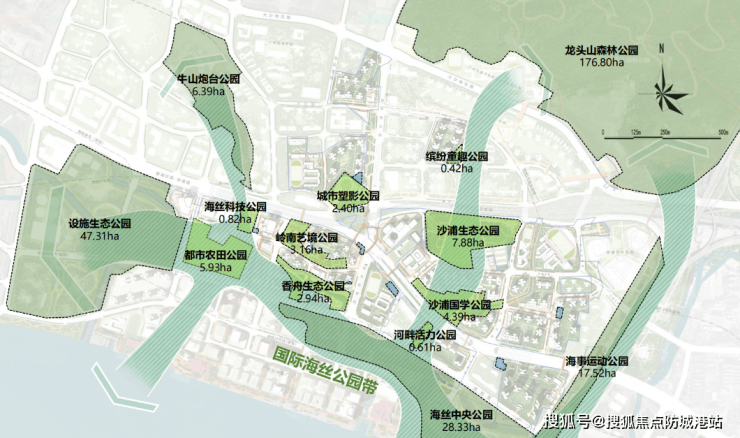 周边拥有多个公园,如龙头山森林公园、南海神庙等,构建了“5大城市生态公园 + 9大特色主题公园 + 7个口袋休闲公园”的公园城市体系。此外,项目还规划了慢行系统网络,方便居民出行。