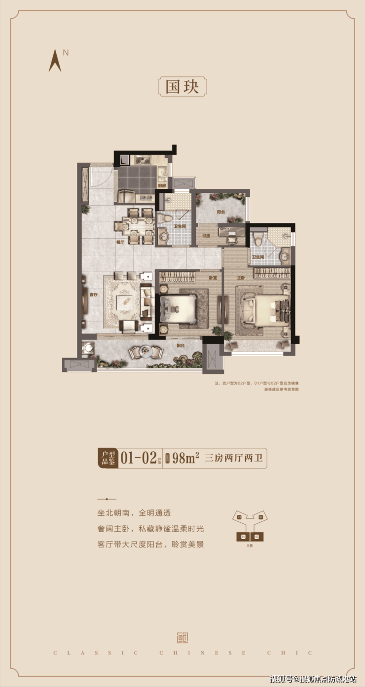 滨江洋房:涵盖建筑面积约98㎡至128㎡的多种户型选择,每户均采用南北通透、全明设计,确保居住舒适度的同时,亦不失奢华感。