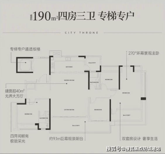 建筑面积约240㎡四至五房:分为东边户和西边户两个户型,共29层,每层3户,总计约54套货量。 这些户型设计注重南向采光、三面景观以及专梯专户等高端配置,旨在提供极致的生活体验。