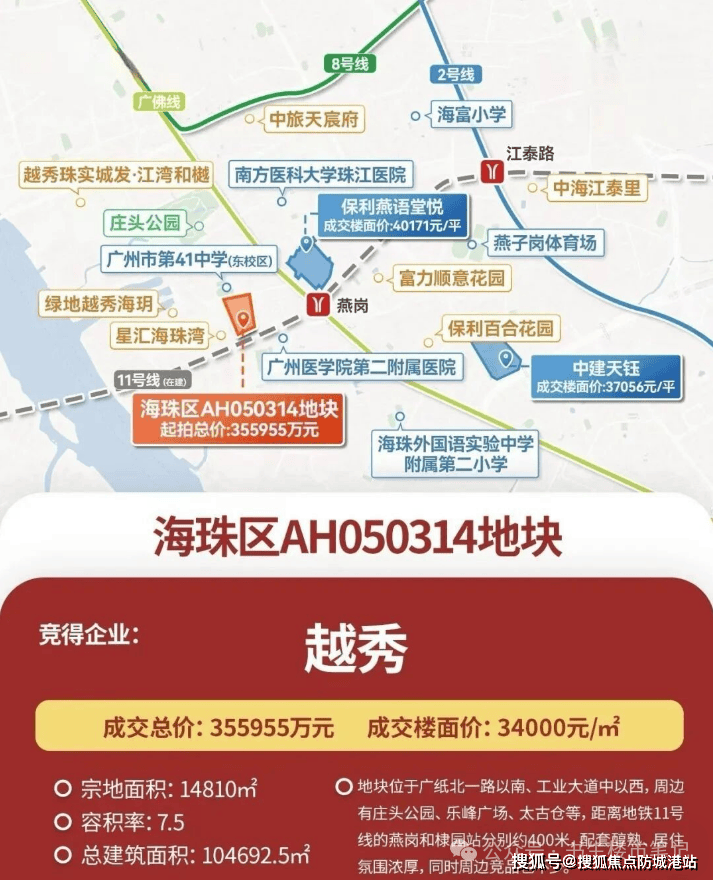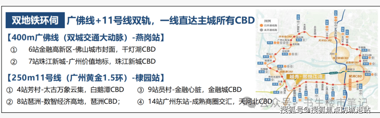 答:距11号线棣园站约250米,距广佛线燕岗站约400米,双地铁交汇出行便捷。