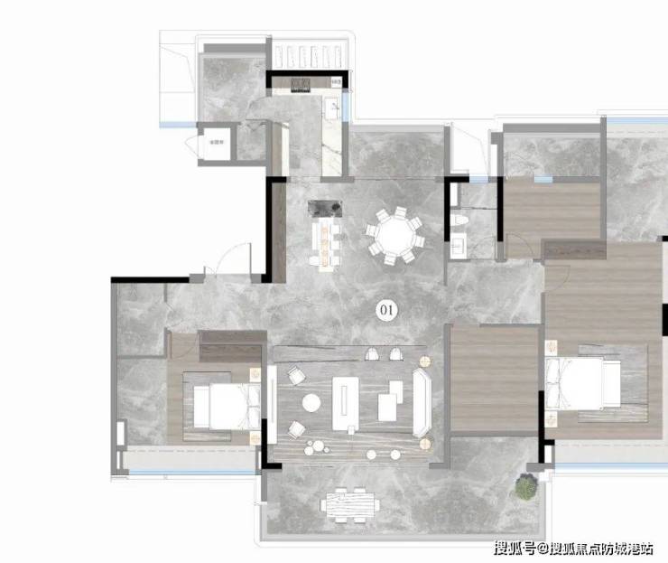 由于是新规后的产品,得房率很高。南向超大面宽,南北双阳台,主卧270度飘窗,尺度惊人,居住舒适度拉满。