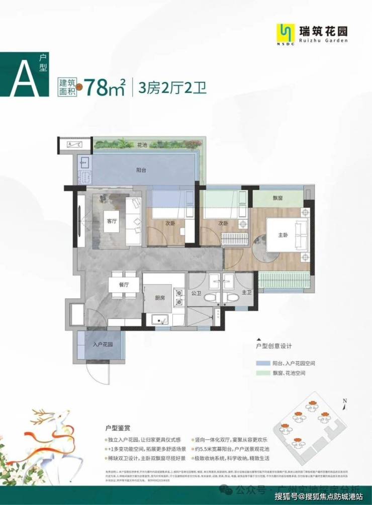 94㎡4房2厅2卫,高拓展入户花园,四开间朝南南北对流,主卧套房设计,270°瞰景飘窗。