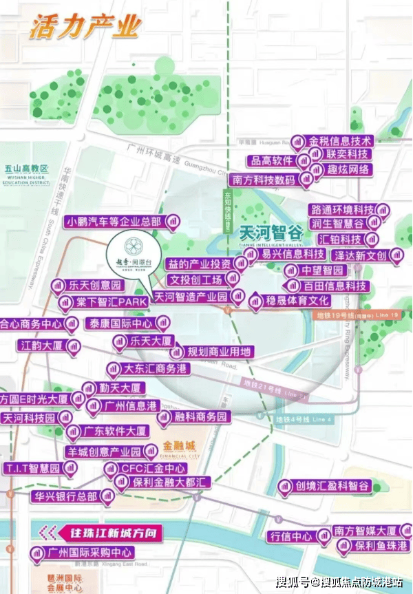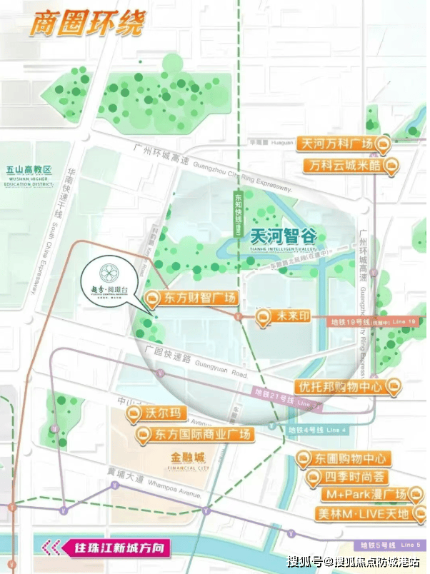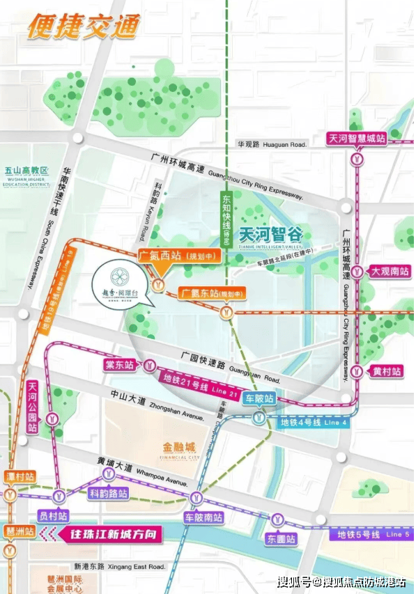 项目地处天河“科创中轴”与“商务中轴”交汇地带,区位战略意义突出。向东约6公里直达广州国际金融城,向南约6公里连接琶洲数字经济试验区,两大城市增长极形成强大辐射效应。随着区域产业导入加速,高端人才持续聚集,片区价值将稳步攀升。