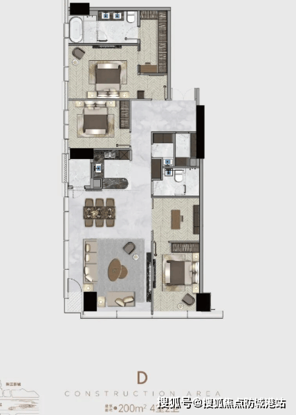 全屋精装配置同样对标全球顶豪标准:德国嘉格纳(Gaggenau)、铂浪高(Blanco)、劳斯(Loewe)、瑞族(V-ZUG)等国际一线品牌家电与厨卫系统悉数配备,整体硬装投入直逼百万级,真正实现“拎包即享世界级生活”。