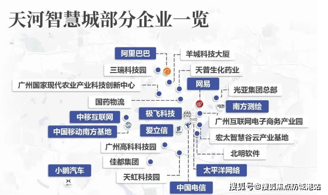 天河智慧城:广州第二个高新区(时隔32年),定位“广州硅谷”,投资强度为珠江新城的4倍,已吸引网易、酷狗等2500+企业,目标2025年建成全市创新企业孵化高地。