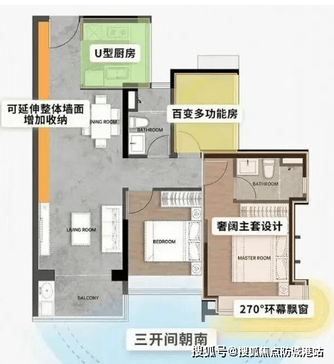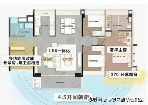 提供从80平到140平的多种户型选择,所有户型均采用蝶形布局,确保每户都能享有良好的采光与通风条件,并尽可能多地欣赏到东面河涌及南面江景资源。