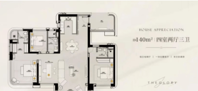 再看内部空间结构,南向双次卧尺度均衡,可打通组合为超过35㎡的大横厅,兼顾家庭成长过程中的多样化需求——小孩成长阶段是双卧室,等孩子成年后则可转化为强化公共空间属性的家庭社交中心。这种“可成长型户型”,正是新规住宅最重要的价值体现之一。