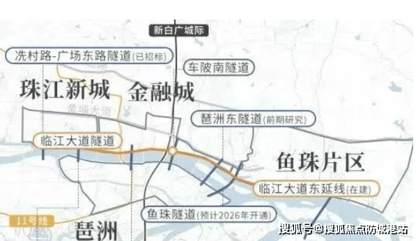 交通维度:去年已开通的地铁11号线实现环线贯通;新白广城际即将通车,使琶洲与金融城仅“一站之遥”;未来规划中的琶洲—鱼珠隧道、琶洲—珠江新城隧道将进一步缝合一江两岸,彻底打破地理阻隔。
