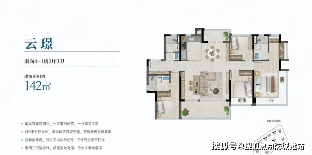 广开云翰的所有户型均采用全南向设计,确保每户都能享受到充足的阳光和开阔的视野。建面约76-142平方米的三至五房户型,不仅空间布局合理,而且实用率超过100%,最高可达约115%。这种高拓展性与灵动性的设计,使得每个家庭成员都能找到适合自己的生活空间,提升了居住的舒适度和幸福感。
