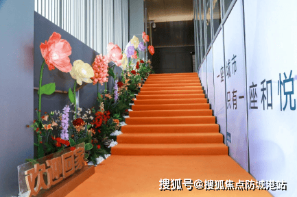 4. **前程似锦**:物业客服亲切迎接业主,递上定制花束,业主沿着繁华的台阶稳步而上,寓意着“步步高升”。