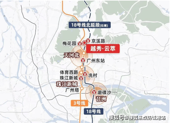 项目堪称 “地铁上盖” 典范,家门口即是 18 号线京溪路站(在建),该站作为全线最深车站已完成主体封底,预计 2026 年底通车后,两站可直达珠江新城冼村站,三站抵达琶洲 CBD。步行 800-900 米还可至 3 号线梅花园站,双地铁无需换乘即可通达天河核心区。自驾经广州大道、沙太路亦可快速抵达珠江新城,通勤效率拉满。