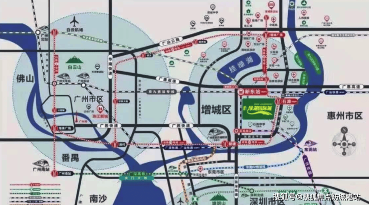 在自驾出行方面,项目周边的高速路网十分发达,包括广惠高速、广河高速、广汕公路和荔新公路等主要干线。通过这些道路,居民可以在35分钟内抵达广州市区,20分钟内到达新塘。同时,新城大道双向8车道的建成通车也大大提升了区域的交通便利性。