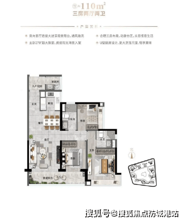 答:主打一线瞰海大平层,采用 “点式 + U 型曲线布局”,超百米楼间距,90% 户型南向直面大海,部分户型可俯瞰 4.5km 滨海超级堤,海景视野优越。