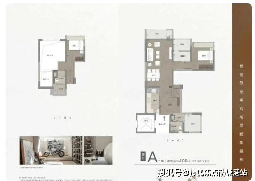 建面约120㎡复式户型,虽整体布局较平层略欠方正,但空间利用率依然出色,凭借独特的结构设计打造多元居住场景。上下两层均配备独立卫生间,满足多人口家庭使用需求,部分区域可灵活改造为露台、书房等功能空间,为生活增添更多可能。该户型作为项目稀缺复式产品,兼具居住与收藏价值,适合长期自住或高端改善需求。