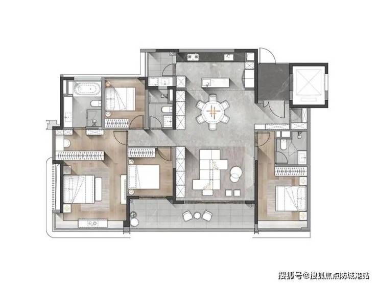 江岛贰号(约183㎡四房两厅三卫):拥有沉浸式瞰江通厅,视野开阔通透。独具匠心的L型百变阳台,宛如私家的“江上自由岛屿”。酒店级阔绰主卧套房,配备独立衣帽间,围合出静谧观江的私属领地。