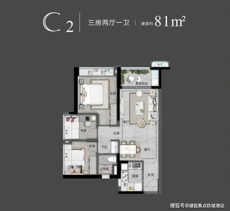 目前在售的主要是13-14号楼,主打79㎡和81㎡的精装三房户型。这些户型设计合理,实用率高达87%,入户花园赠送面积大,整体布局紧凑而不失舒适。客餐厅阳台一体化设计使得室内采光通风良好,飘窗设计进一步提升了居住舒适度。动静分区合理,干湿分离,为业主提供了更加优越的居住体验。