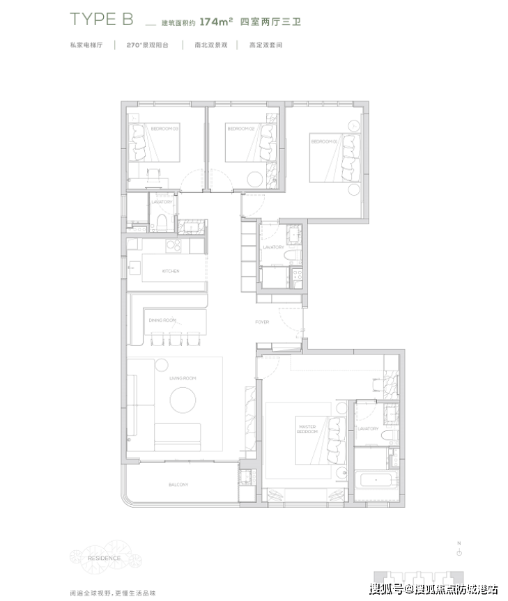 高端定位,采用专梯专户设计,居住私密性强,外立面颜值高,符合豪宅标准。