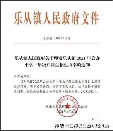 (图片来源乐从镇2021年公办小学一年级户籍生招生方案的通知)