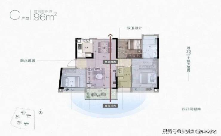 96㎡三房是改善优选,稀缺的南北对流设计,客厅和主卧都能通风,三开间朝南保证每个房间都有阳光,适合对居住舒适度有要求的家庭;
