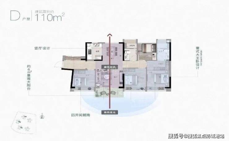 产品方面,可以满足刚需“实用+舒适”的需求,85-110㎡三四房全是带装修现楼,户户朝南,2梯4户。