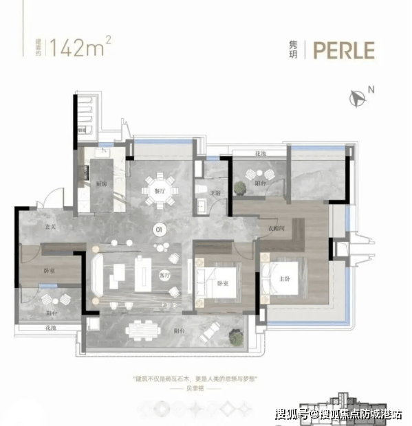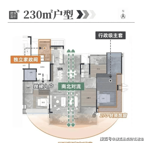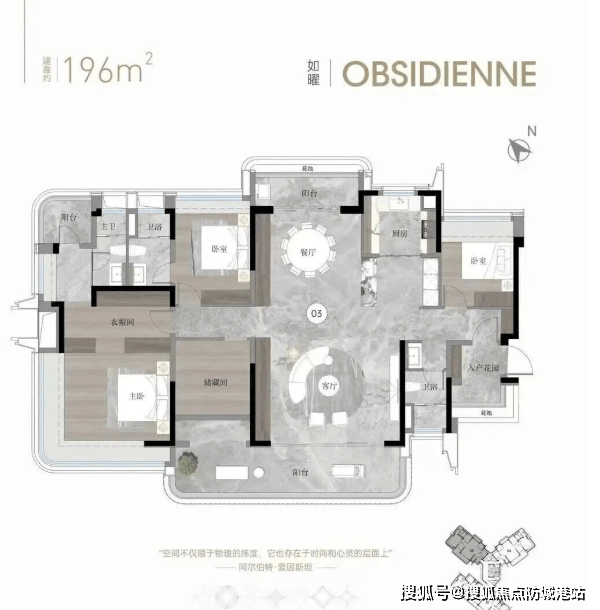 215㎡户型:横跨客厅与次卧的巨幅景观阳台,堪比空中花园;南向双套房设计,主卧配备休憩区、步入式衣帽间、L型270°飘窗,仪式感与实用性兼备;全屋飘窗+南北通透,实现无死角采光。