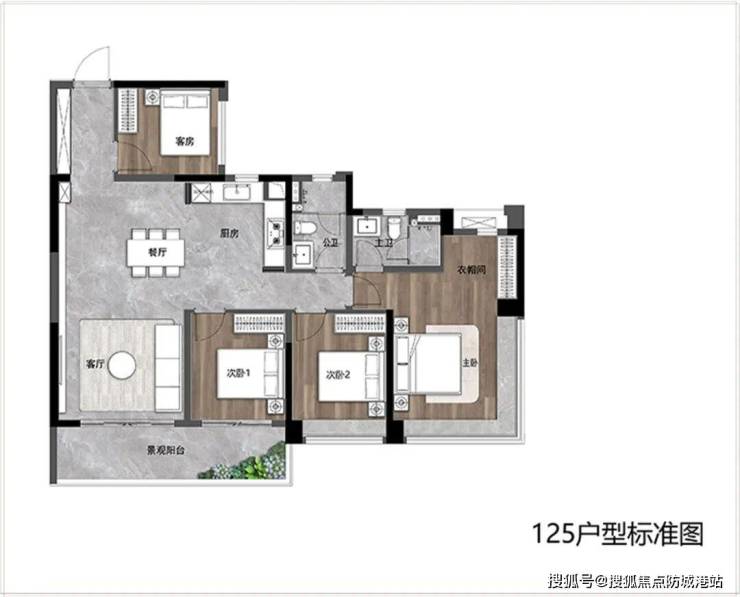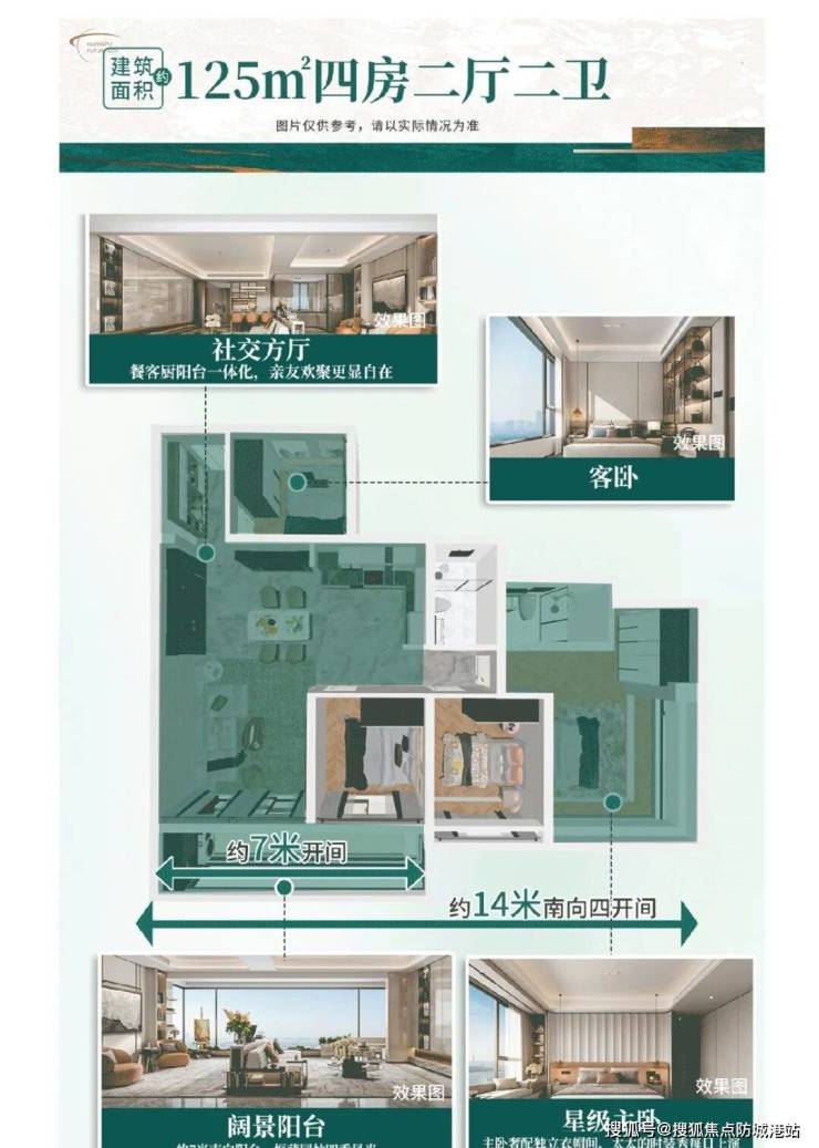 约125平4房2厅2卫,奢享全明电梯厅,让业主每次归家都能被生动的景观、采光包裹,抚平业主归家情绪;