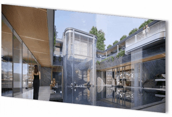 高配下沉式会所,全玻璃穹顶设计,打造集健身房、共享书吧、文展咖啡馆、商业盒子等多功能空间,理想精英生活发生地;