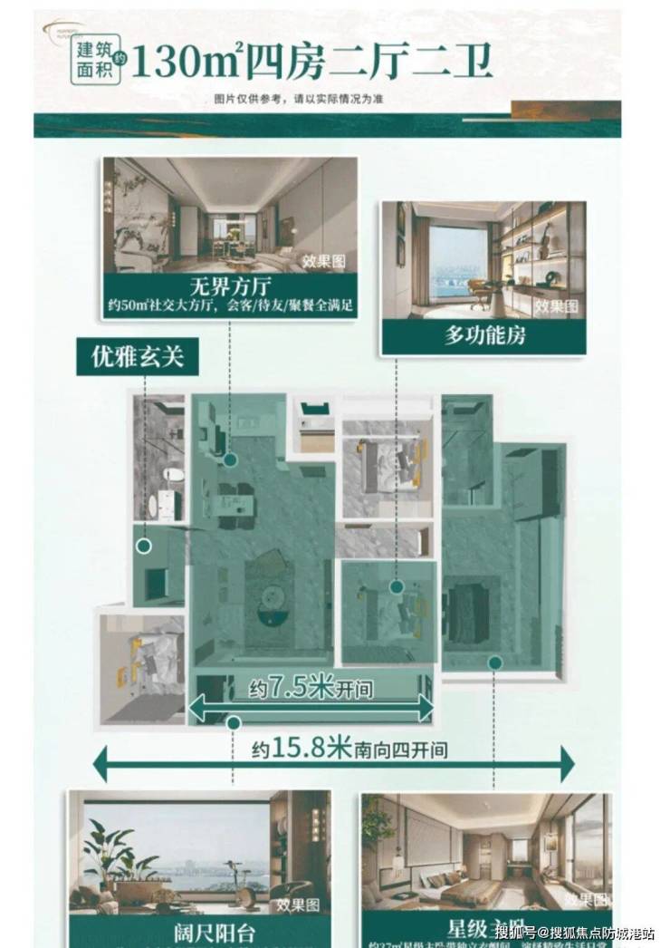约15.6米南向全面屏采光,搭配约7.5米阔景阳台及全明卫生间,居住舒适度更上一层。