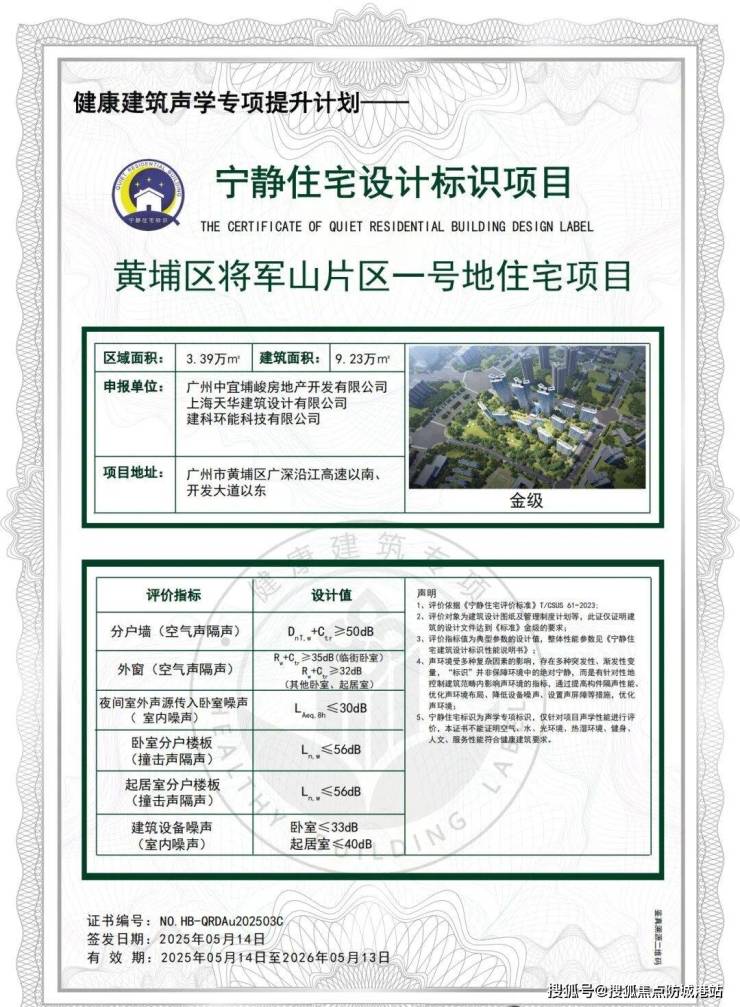 中国城市科学研究会颁发的宁静住宅设计标识项目金奖