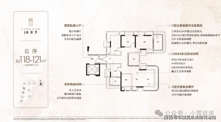 约118-121㎡,单价4-4.5万元/㎡,总价472-545万元