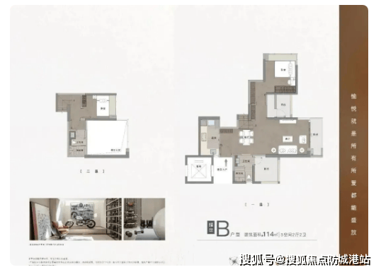 2. 114㎡复式户型:实用至上,空间灵动。该户型为四房两厅两卫设计,真复式结构,得房率高,户型布局实用,空间灵动,适配改善型家庭居住;上下两层分层布局,下层为公共区域,包括客厅、餐厅、厨房、公共卫生间及一个卧室,客厅连接景观阳台,采光充足,通风流畅,阳台可作为休闲区,欣赏社区园林景观;厨房L型设计,操作空间充足,动线合理;下层卧室可作为客房或老人房,方便使用;上层为私密区域,布局三个卧室及一个卫生间,主卧空间宽敞,配备飘窗与独立卫生间,私密性强,另外两个卧室空间灵活,可改造为儿童房、书房,满足家庭成长需求;该户型空间利用率极高,无浪费空间,分层居住的设计,能有效避免家人之间的相互干扰,提升居住舒适度。