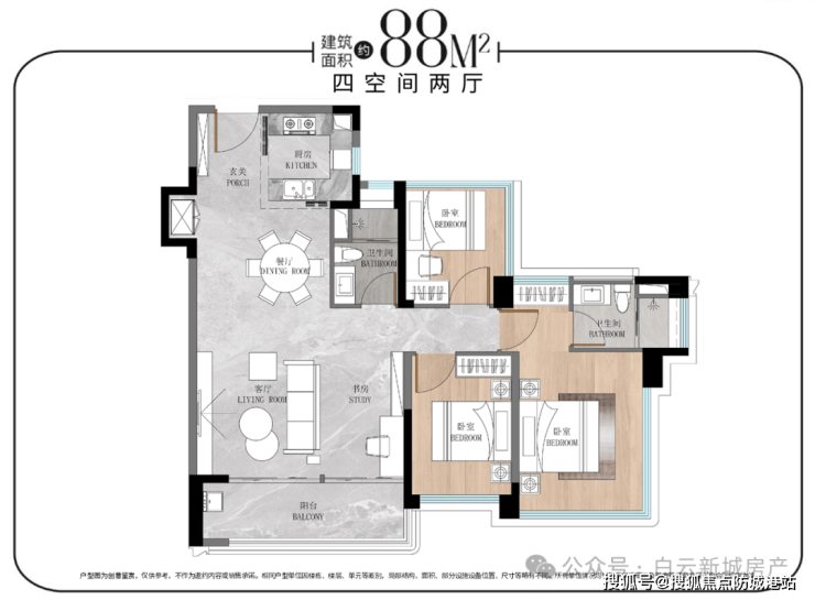 建面约88㎡ 三房两卫:总价约XXX万元起