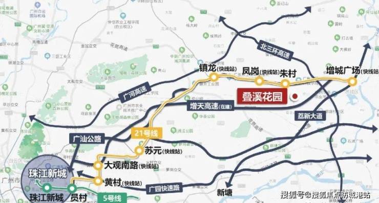 叠溪花园的交通便利性不容小觑。它距离21号线朱村站仅几步之遥,从这里出发,换乘快线后只需一站即可到达黄埔,四站到天河。此外,项目周边还有多条高速公路环绕,如北三环高速、广河高速、济广高速等,轻松实现快捷出行。预计建成后的增天高速将进一步缩短至天河的时间成本,真正实现了“4站地铁(快线)到天河,30分钟到天河”的目标。