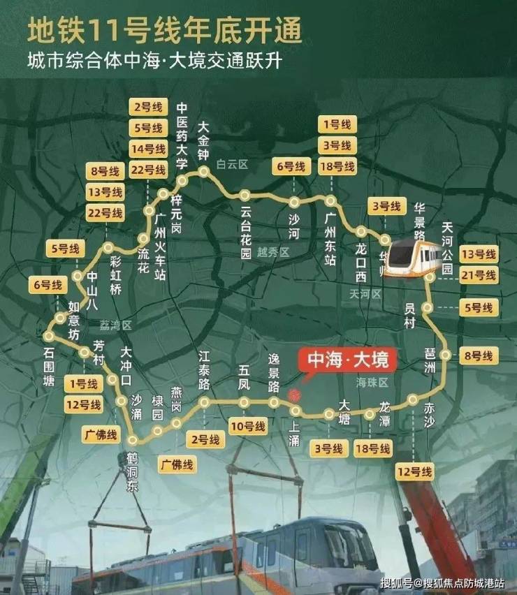 中海大境坐落于广州新中轴线上,紧邻地铁11号线【上涌站】,这条地铁大环线被称为“换乘之王”,覆盖广州核心区域,并与所有轨道交通实现换乘。此外,项目靠近广州大道、新滘西路等主干道,驾车至珠江新城和琶洲等商圈仅需15分钟左右,极大地提升了通勤便捷度。