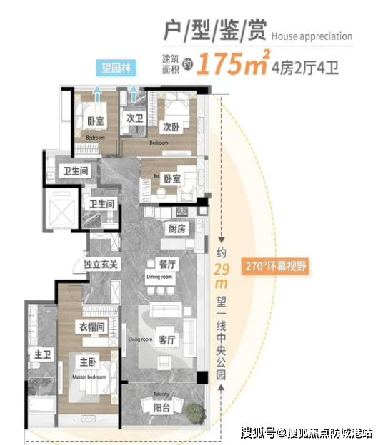 项目采用纯板式建筑布局,南北通透,楼间距宽,确保每户良好采光与通风。社区被规划绿地与公园包围,虽未明确提及具体公园名称,但文中多次强调“基本被公园包围”,生态基底优越。