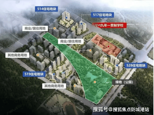 绿化面积达6.5万㎡,绿化率35%,车位配比高达1:1.65,由越秀物业提供服务,物业费3.8元/㎡·月,保障长期高品质运营。项目分五个地块(514、517、519、528等)开发,首开的519地块包含11栋住宅及2栋商办楼,整体布局疏朗,被公园与绿地环绕,居住氛围静谧。