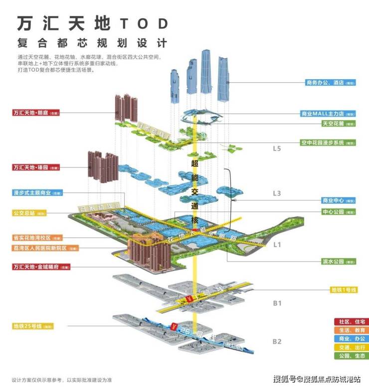规划全面:涵盖约30万㎡地标级总部办公、18万㎡城市级购物中心、50万㎡科创产业集群、17.6万㎡立体公共空间及4.5万㎡滨水绿带,打造活力大城。