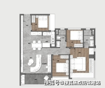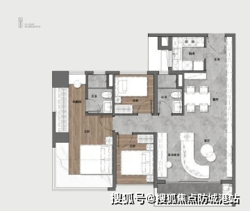 建面约88㎡三房两厅两卫;