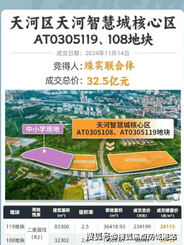 珠江・天河都荟位于天河智慧城核心区 AT0305108、AT0305119 地块,由珠江实业与城投联合体斥资 32.5 亿拿下,是珠实继珠江花城、天河壹品后,在天河东的又一标杆力作。