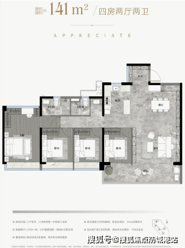 解答:高使用率主要得益于对最新建筑规范的充分利用和设计的精细化。通过优化墙体厚度、合理分配公摊、设计大面积的赠送空间(如飘窗、阳台等),使得实际可使用面积远超建筑面积。实际居住感受就是“显大”和“实用”。同样的建筑面积,这里的房间更宽敞,功能区更完善,比如一百零五平米能做到真四房,且每个房间都能舒适地放置床铺和衣柜,完全没有紧凑感。